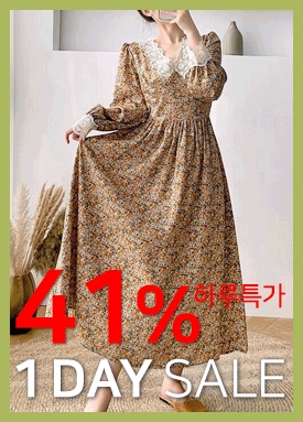 레이스 카라 플라워 롱 원피스
