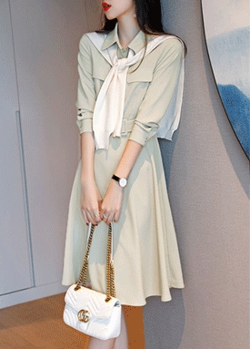 [당일발송] 포켓 디자인 셔츠 원피스+벨트 세트