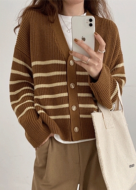 스트라이프 브이넥 긴팔 가디건