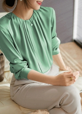 [빠른출고] 핀턱 볼륨핏 글로시 블라우스