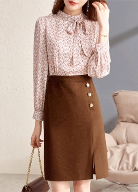 리본 블라우스 H라인 스커트 원피스