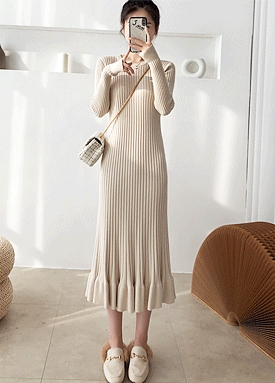 머메이드 밑단 골지 니트 원피스