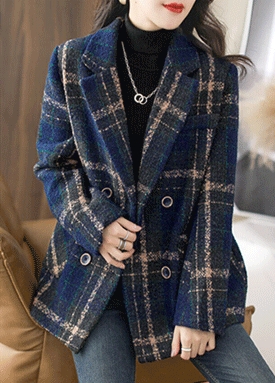 [당일발송]도톰 배색 체크 반 코트