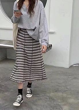 [봄격시작] 빈티지 밴딩 하운드투스 롱 스커트