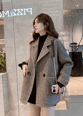 [빠른출고] 물결 패턴 체크 소매 안감 반 코트