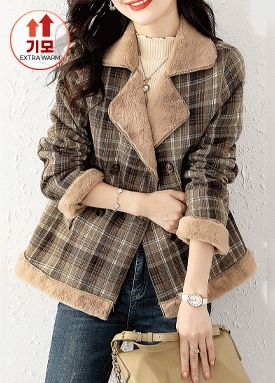[당일발송] 기모 안감 도톰 체크 반 코트