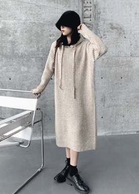 [당일발송] 세로 골지 보카시 니트 후드 원피스
