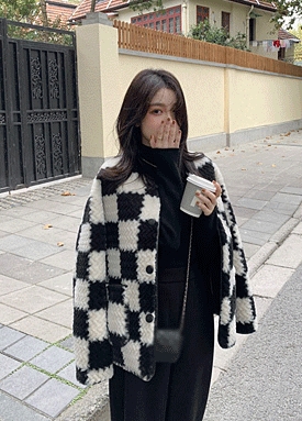 인조 퍼 체크 노카라 자켓