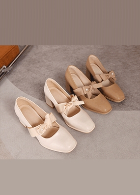 리본 진주 미들굽 펌프스