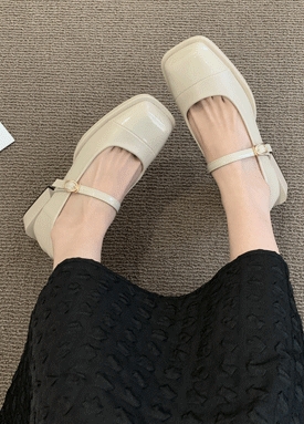 에나멜 포인트 스퀘어 토 스트랩 펌프스