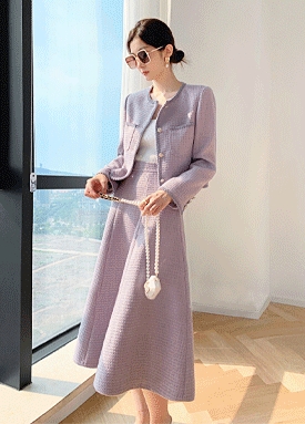 페미닌 트위드 자켓+A라인 롱 스커트