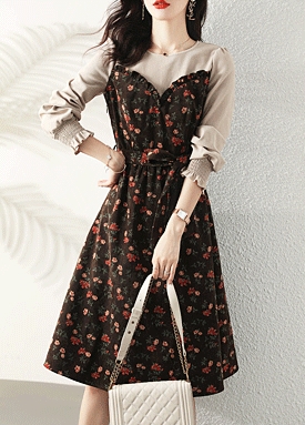 [재입고] 코듀로이 플라워 벨트 원피스