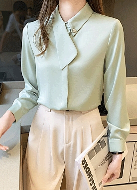 [재입고] 히든 버튼 엣치 브로치 블라우스