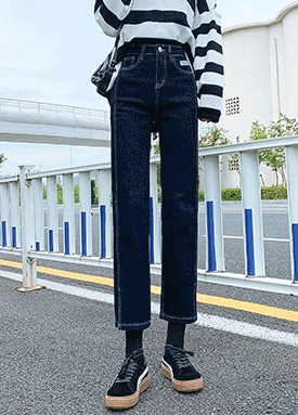 [당일발송] 사이드 트임 일자핏 데님 팬츠