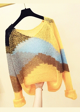 [당일발송1] 컬러 패턴 브이넥 니트
