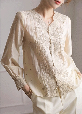 자수 레이스 라인 블라우스