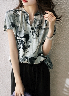 [재입고] 기하학 패턴 오픈 차이나넥 블라우스