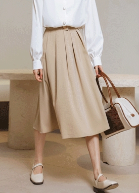 [재입고]버튼 밴딩 핀턱 플레어 스커트