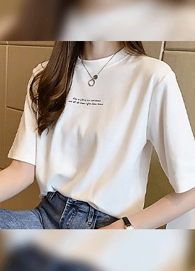 [당일발송1] 스판 라운드 레터링 반팔 티셔츠