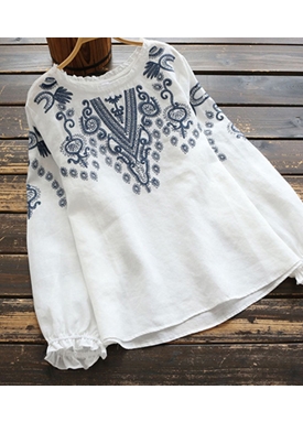 [당일 발송]자수 코튼 린넨 블라우스