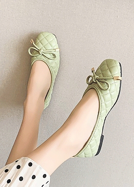 [당일발송] 스퀘어 퀼팅 리본 플랫 슈즈