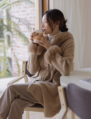 퍼트리밍 후드 니트코트