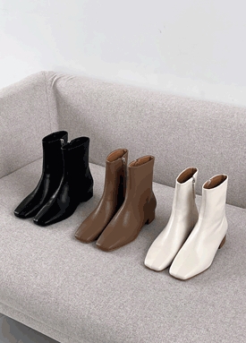 사각코 옆지퍼 플랫굽 앵클부츠#
