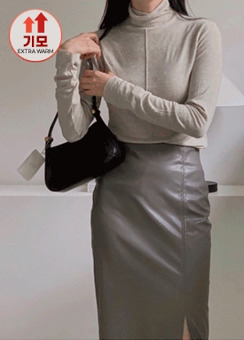 절개 핀턱 울 스판 폴라티
