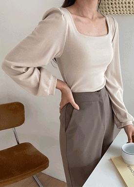 쫀쫀스판 마카롱 셔링 퍼프 티셔츠♪