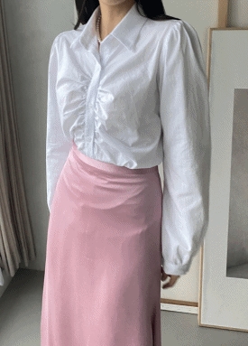 프론트 셔링 퍼프 셔츠♪