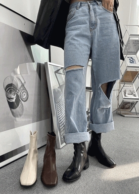 봄 가을 스판 스퀘어 각코 뒷지퍼 스판 통굽 앵클부츠