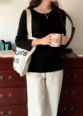 반목 폴라 어깨 핀턱 스판 티셔츠