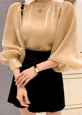 시스루 펄 퍼프 블라우스