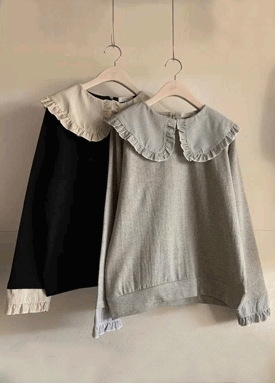 코튼 프릴 배색 셔링 레이어드 블라우스