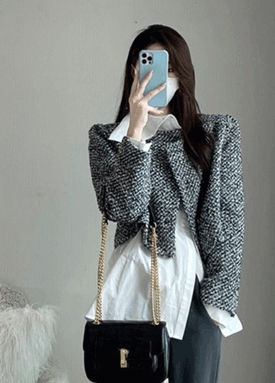 노카라트위드자켓+옆트임셔츠+옆트임 밴딩팬츠세트