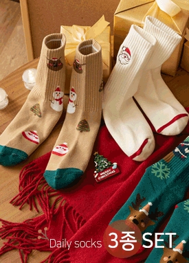 크리스마스 일러스트 중목 양말 3종 세트 #