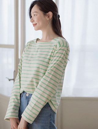 스퀘어넥 소프트코튼 스트라이프티셔츠