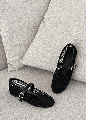 메쉬 버클 플랫 슈즈