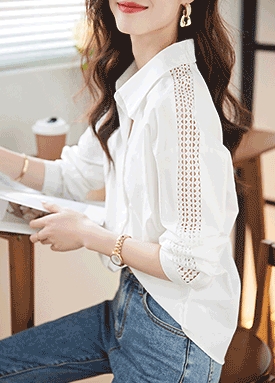 차이나카라 출근룩 긴팔 블라우스