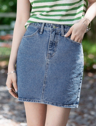 일자핏 3부 데님스커트