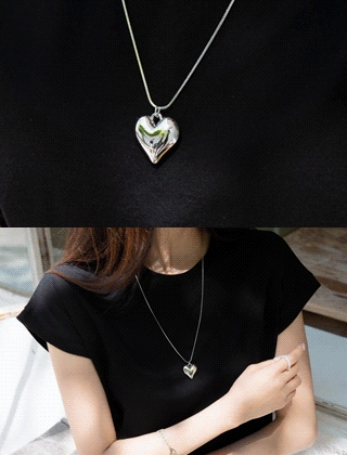 하트펜던트 실버 롱목걸이