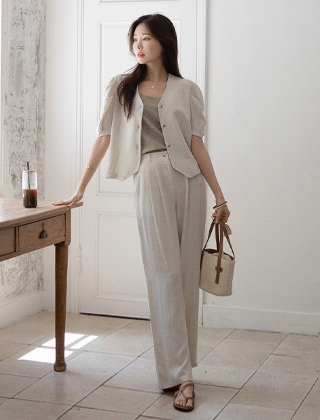 린넨 브이넥자켓+린넨 와이드팬츠SET