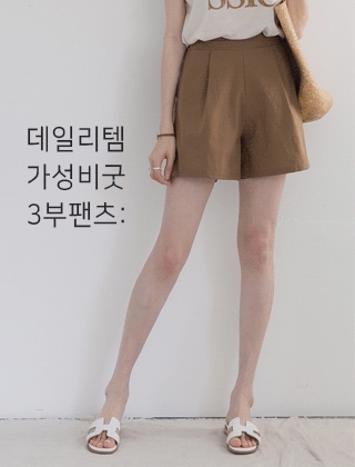 핀턱주름 뒷밴딩 3부바지