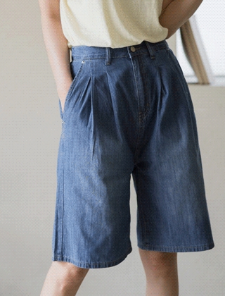 더블핀턱 해지청 5부팬츠