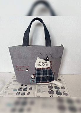 고양이 패턴 캔버스 토트백