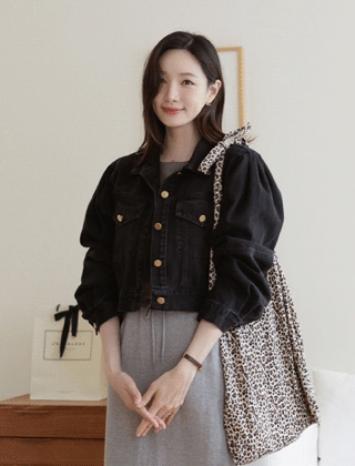 퍼프소매 크롭 데님자켓