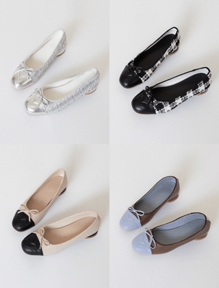 하트스티치 배색코 플랫슈즈