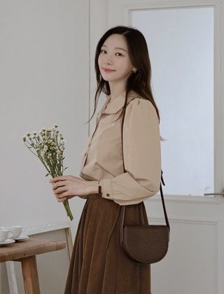 배색스티치 퍼프소매 셔츠블라우스