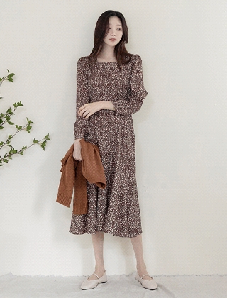 스퀘어넥 퍼프소매 플라워원피스