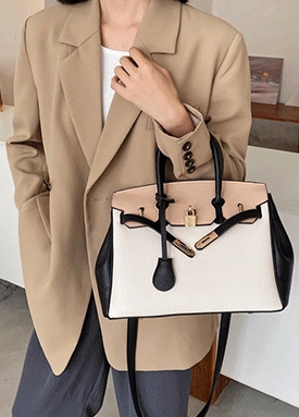 배색 금장 자물쇠 크로스백